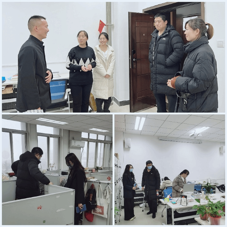 学院党委副书记李刚,办公室主任郭雅楠、安全员刘敏、资源保障秘书何达艳一行排查了学院会议室、教职工办公室、楼道公共区域的消防、公房使用安全状况;重点检查会议室的电路电源是否裸露、就近安全疏散通道是否畅通、就近灭火设备是否完好、是否存在改变公房功能使用的情况;检查教师办公室是否存在大功率用电设备、设备线路老化、试卷考卷杂物堆积、卫生状况、房内前面地面的建筑安全隐患等。