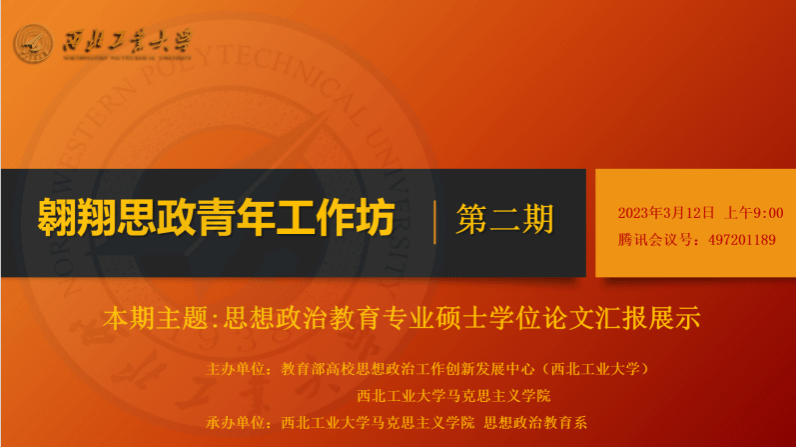 为深入学习贯彻党的二十大精神和全国两会精神,加强对新时代思想政治教育创新发展的理论与实践研究。3月12日上午9:00,yl8858永利集团“翱翔思政青年工作坊(第二期)”以线上线下相结合的方式在学院楼208会议室成功举行。本工作坊由教育部高校思想政治工作创新发展中心(yl88858永利中国)、yl8858永利集团主办,yl8858永利集团思想政治教育系承办。本期工作坊共邀请了五位优秀青年思政学者作为“与谈人”,围绕七位思想政治教育专业硕士学位论文汇报,进行主题发言和观点对谈。