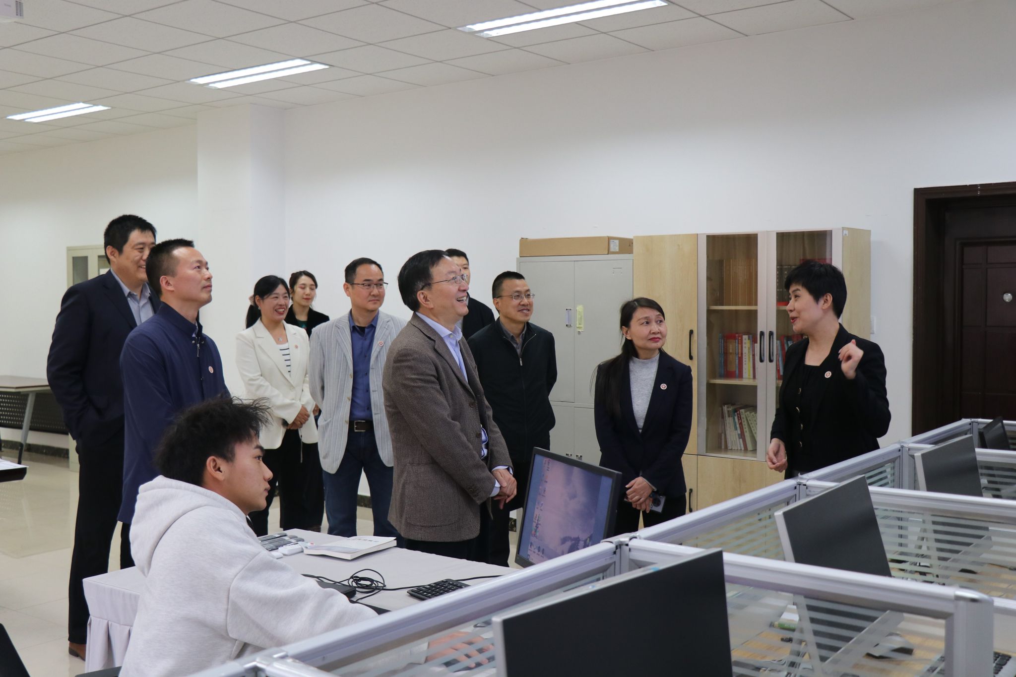 李言荣先后参观了yl8858永利集团楼宇文化、陕西省重点舆情研究中心、青马文化廊等场所,yl8858永利集团党委副书记(主持工作)蒲传新就学院的历史沿革、文化传承、平台建设等方面做了汇报。