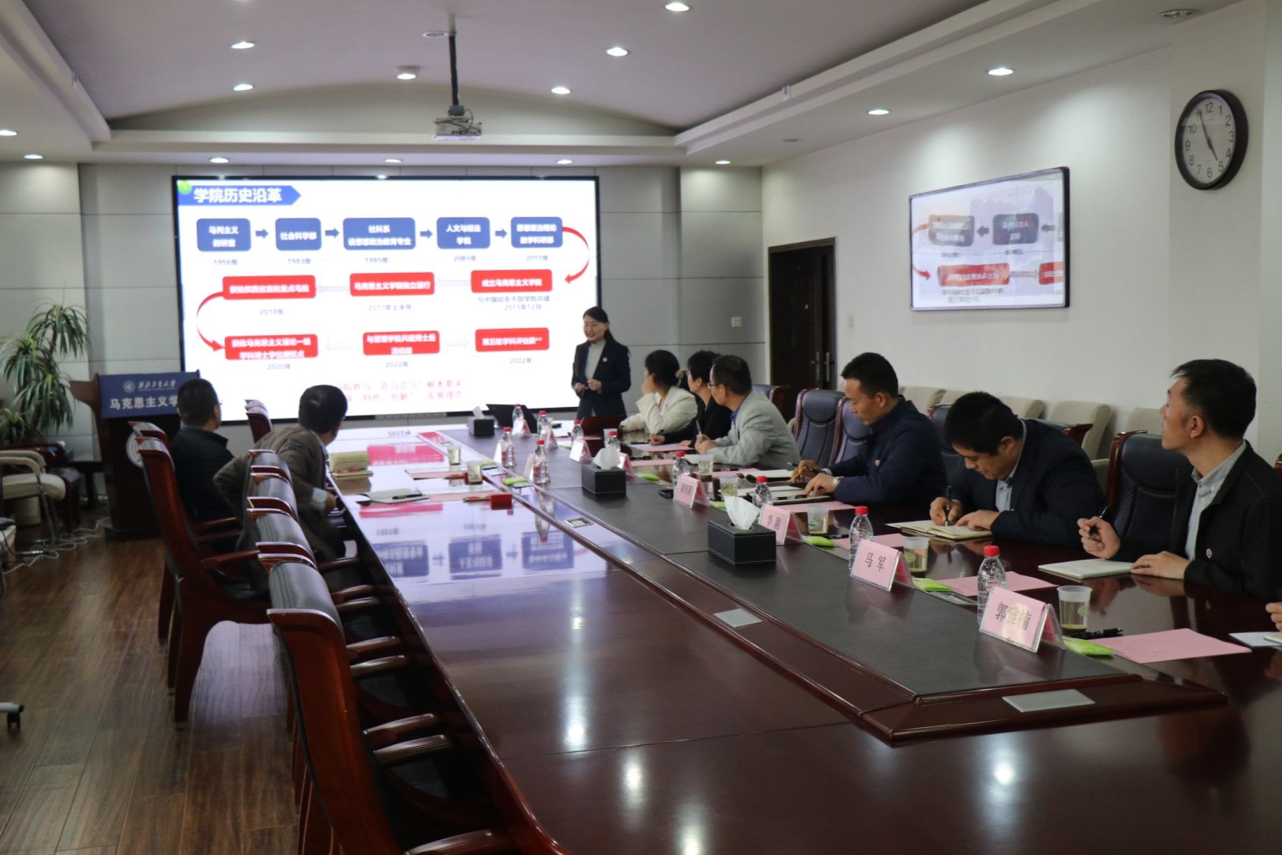 座谈会上,杨云霞代表学院作《集全校之力,重系统推进,实现开放特色创新发展》主题汇报,就学院党的建设、师资队伍、思政课教学、学科建设、人才培养、特色优势等方面作了详细汇报,并提出了目前学院发展中存在的问题和不足。与会同志结合岗位进行了补充汇报。