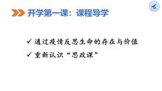 从马克思主义基本原理视角反思疫情,以家国、担当、自然三个关键词入手,反思疫情防控中个人与社会、国家、世界之间的共同体关系,引导学生认识到,疫情以独特的方式反映出个体利益与社会利益高度一致,因此,每个普通人的担当精神尤为重要,同时,引导大家反思人类与自然之间如何形成和谐共生关系。通过以上疫情防控专题,引出课程教学内容。