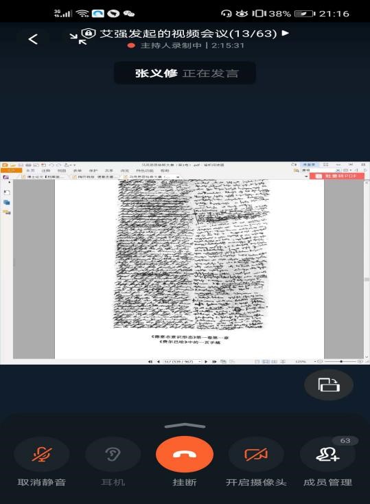 2020年6月7日19:00,西工大“启真明智”第五期读书会在钉钉线上如期举行。本次读书会特别邀请到了湖北工业大学魏忠明老师、南京大学张义修老师作指导,yl8858永利集团张云龙老师、丁社教老师、王彦丽老师、杨冰郁老师、陈诚平老师以及15位硕博士研究生共同参加,大家以《德意志意识形态》第一节作为研读篇目,展开了交流和讨论。