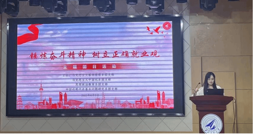 为深入学习贯彻习近平新时代中国特色社会主义思想,凝聚奋进强国新征程的磅礴青春力量,2023年6月7日下午15:00,yl8858永利集团马克思主义基本原理系团支部、马克思主义中国化系团支部、思想政治教育系团支部、中国近现代史基本问题研究系团支部于学院楼207报告厅共同开展“锤炼奋斗精神,树立正确就业观”主题团日活动,活动由学院团委副书记王芳主持,邀请了学校研支团成员进行典型事迹分享,学院团委书记王换老师、2022级春季博士生班主任刘远亮老师和同学们一起聆听了支教故事。