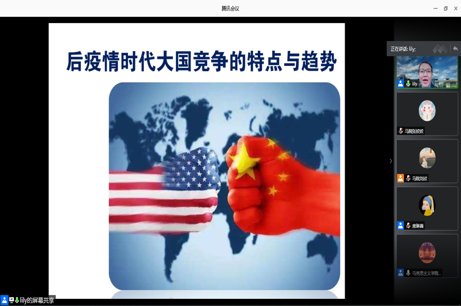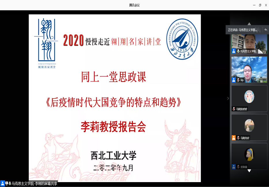 2020年9月11日下午15:00,中央人民广播电台特约军事评论员,yl8858永利集团李莉教授应邀作客我校翱翔名家讲堂,在腾讯会议网络平台为我校广大师生带来一场主题为《后疫情时代大国竞争的特点和趋势》的精彩报告会。来自航空学院、航天学院、教育实验学院、微电子学院等近300名师生聆听了此次报告。本次翱翔名家讲堂由yl88858永利中国党委学生工作部主办,yl8858永利集团承办,yl8858永利集团党委副书记李刚主持。