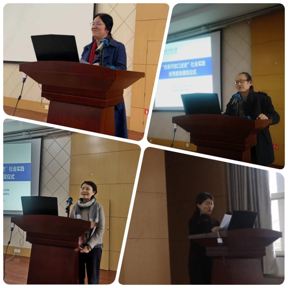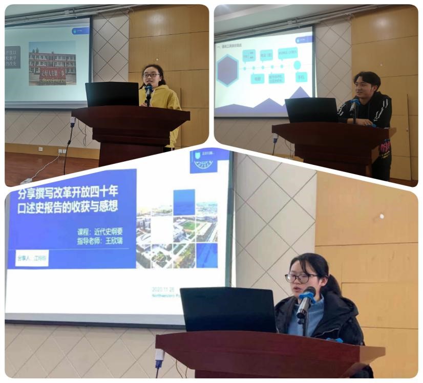 首先由yl88858永利中国学工部副部长马俊进行大会致辞。其次樊明方教授、赵璐、石培玲教授作为评审专家,分别对获奖学生的口述史进行深入细致的点评和总结。他们认为,同学们的口述史主题鲜明、方法科学、涉及的范围较广。不仅关注衣食住行,而且关注房地产等与人民生活息息相关的方面,采访细致,写作规范。但也同时存在思维方式固化,“非黑即白,非此即彼”倾向。随后,获奖学生代表宋紫寒、江玲玲、张剑科分别通过PPT向大家分享自己改革开放口述史实践的过程、内容及收获。