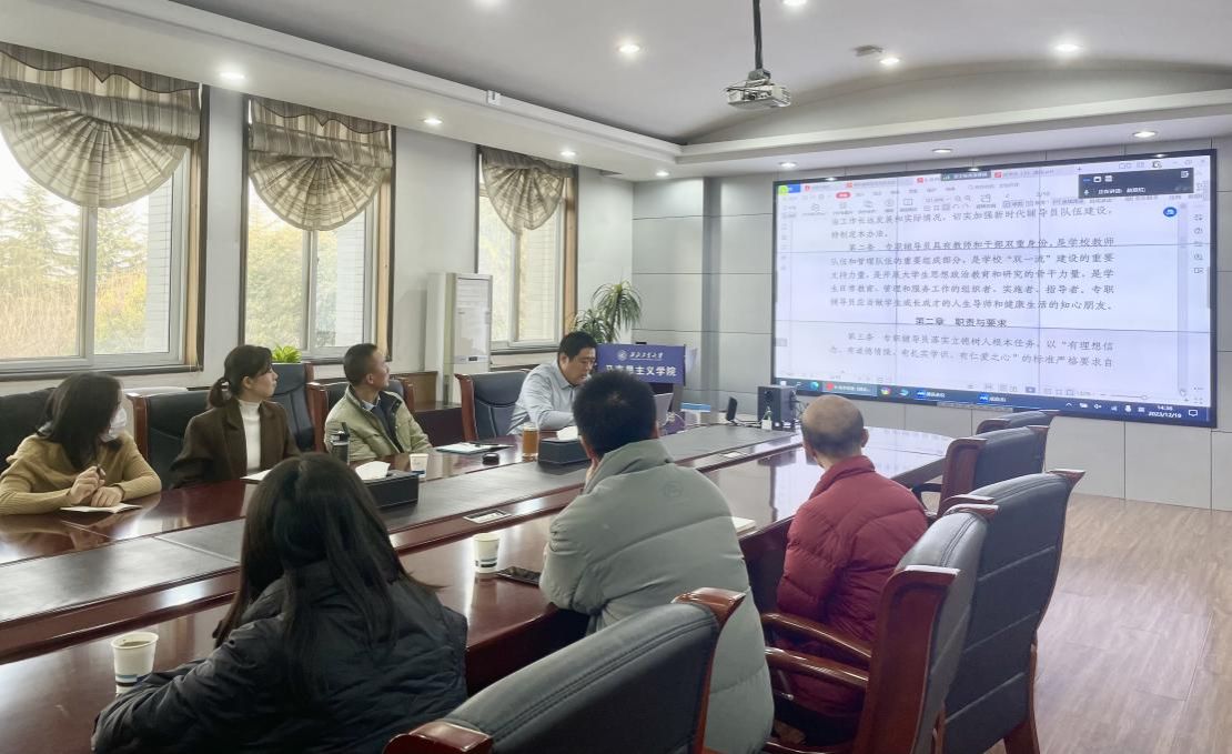 会议第一项,李刚带领各位专职辅导员教师深入学习《yl88858永利中国专职辅导员管理办法》《yl88858永利中国专职辅导员考核办法(试行)》两个文件,并对文件中所明确的辅导员职责要求、选任聘用机制、考核内容、职务晋升等进行了详细地解读,与会教师认真学习并做了详细的记录。