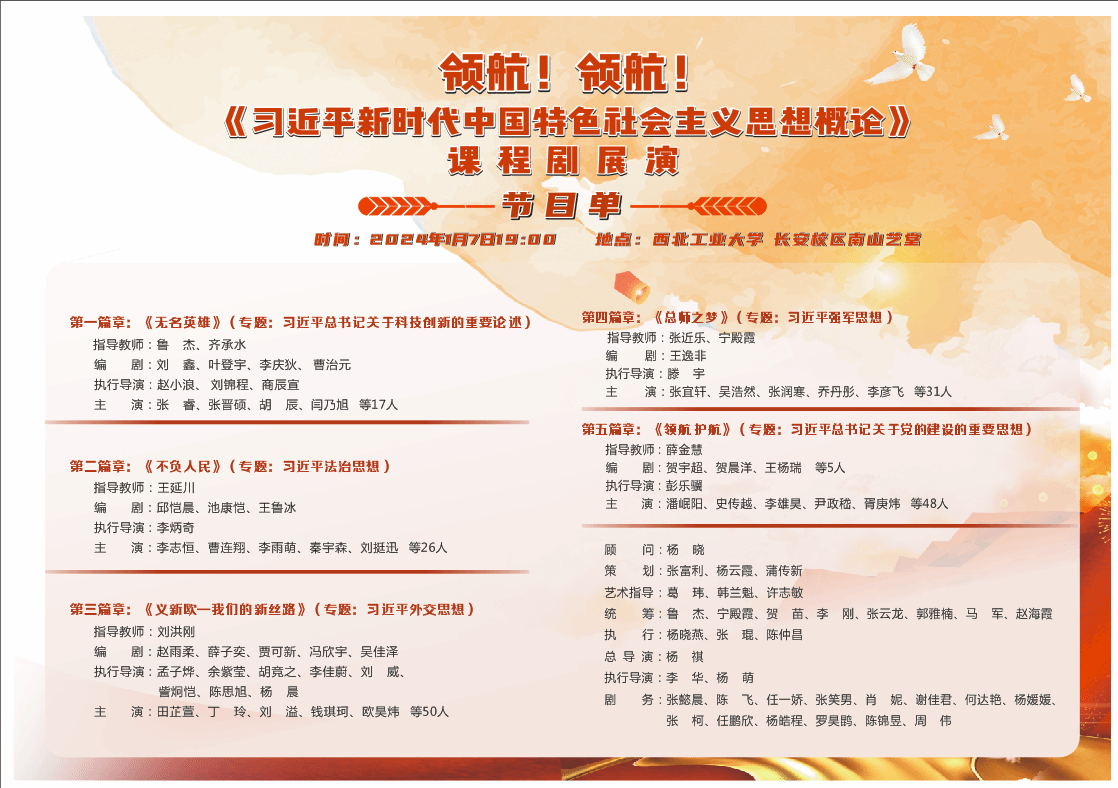 2024年1月7日晚,由中共陕西省委文明办、中共陕西省委教育工委主办,yl88858永利中国承办的“领航!领航!《习近平新时代中国特色社会主义思想概论》(以下简称《概论》)课程剧”在yl88858永利中国长安校区南山艺堂举行。