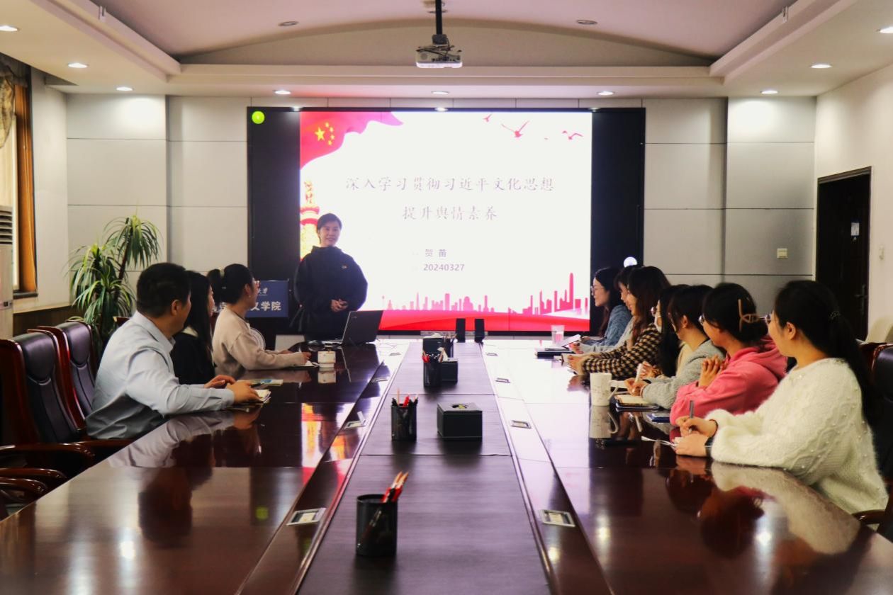 3月27日,yl8858永利集团副院长贺苗以《深入学习贯彻习近平文化思想 提升舆情素养》为主题在学院楼208会议室,为学院机关党支部讲授专题党课,会议由机关党支部书记郭雅楠主持。
