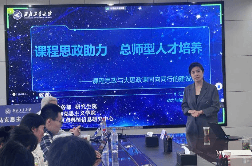 会议开始,贺苗副院长对王俨剀副教授的到来及其对学院思政课程建设工作的支持表示热烈欢迎与感谢,并对我院思政课程和课程思政协同育人的举措做了简要介绍,着重强调了课程思政与思政课程同向同行,将 “总师育人文化”融入思政课堂的重要性,动员各位思政课教师积极研讨交流,与理工科教师共同探讨课程交叉融合,不断推进“大思政课”建设深层次发展,打造学生喜闻乐见的思政课堂。