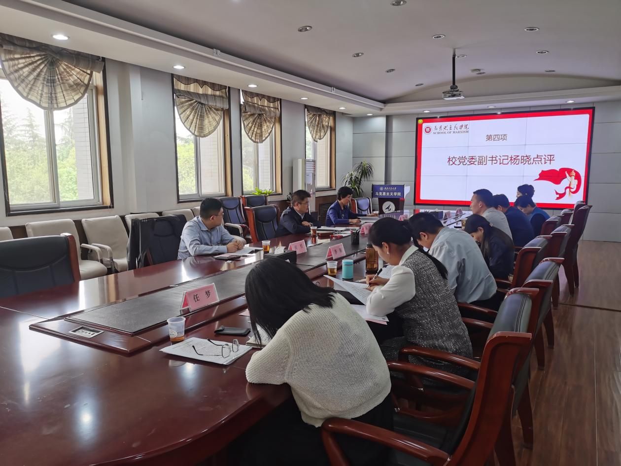 学校党委副书记杨晓在点评讲话中指出,一是希望学院党委高度重视巡视整改工作,系统推进巡视整改工作高质量完成。对标《关于巡视yl8858永利集团党委的反馈意见》提出的整改问题,切实加强学院马克思主义理论学科建设、思政课建设,加大研究生培养和人才引进力度;二是工作中要讲究方式方法,系统推进,重点突破,完善内部治理体系,确保工作出实效;三是推动全面从严治党向纵深发展,学院领导要结合分管领域的工作认真查找管理上的漏洞,结合学校目标责任制,锚定学校“127”发展目标,对标一流,为实现学院高质量发展凝心聚力,砥砺前行。