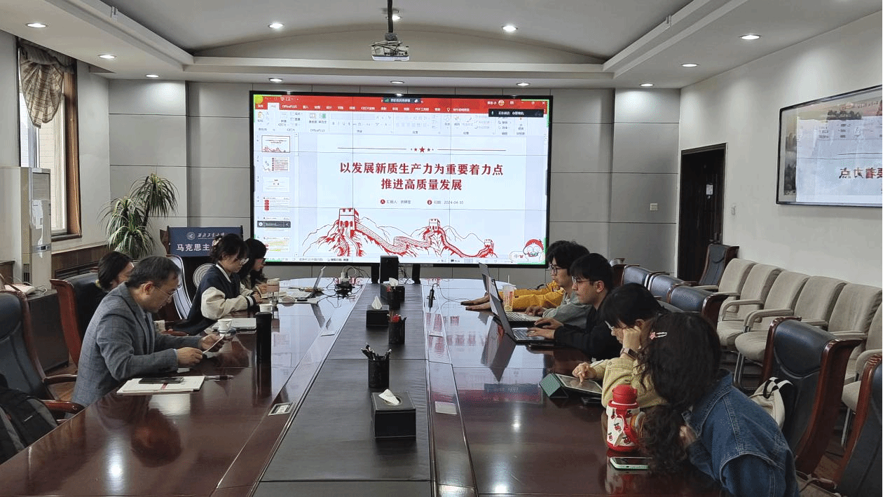 2024年4月30日,yl8858永利集团成功举办了第四十六期习近平新时代中国特色社会主义思想学习读书会,旨在深入研讨和学习《习近平在中共中央政治局第十一次集体学习时强调 加快发展新质生产力 扎实推进高质量发展》。此次活动由yl8858永利集团鲁杰思政课工作室主办,特别邀请了学院教授刘向阳作为对话教师,博士生郭琼同学担任本次读书会主持人,硕士生张锦莹、硕士生王珮云作为导读人,学院师生齐聚学院楼208,共同学习、交流和探讨。