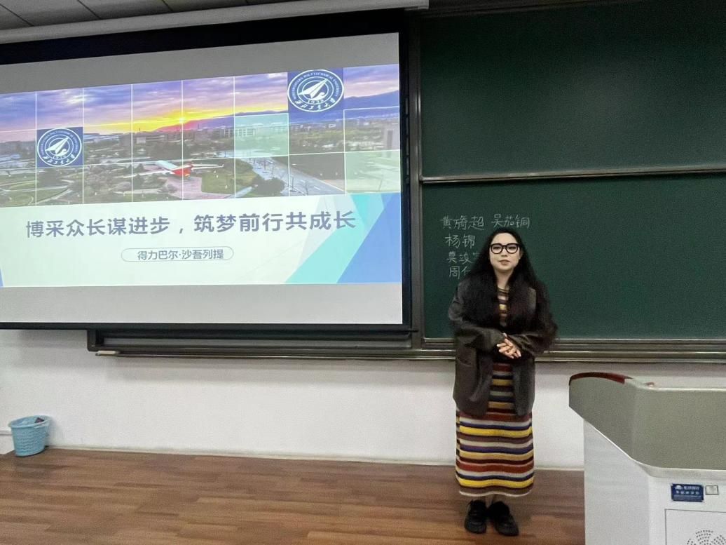 首先,得力巴尔回顾了自己在大学期间的学习和生活经历。她讲述了面对挑战时的坚持与努力,以及如何通过积极参与校园活动和社团组织来丰富自己的大学生活。其次,她详细分享了自己在宣讲团的经历,还向大家分享了参加竞赛的经验。她的经历不仅展现了个人的坚韧和毅力,也展示了大学生活的多样性和包容性。