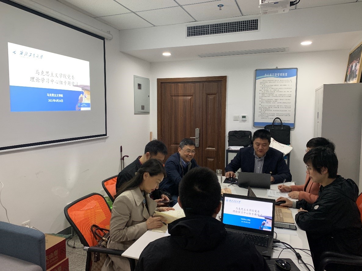 其次,学院副书记李刚领学《党史》,并针对党史学习做了《坚定不移做好新时代意识形态工作》的汇报,从什么是意识形态、为什么意识形态工作极端重要、意识形态工作的任务、加强意识形态工作的阵地建设、加强意识形态工作的有效措施、正确把握意识形态工作中的若干关系等六个方面进行了分析解读。