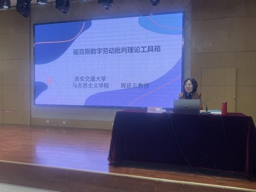 为深入学习贯彻习近平新时代中国特色社会主义思想,引导师生深刻把握信息时代马克思政治经济学的应用场域,提升学术前沿洞察力和理论创新力,2024年5月15日上午,西安交通大学周延云教授做客我校翱翔灵犀学术殿堂,在yl8858永利集团207报告厅带来一场题为《福克斯数字劳动批判理论工具箱》的讲座。本次讲座由党委学生工作部主办、yl8858永利集团承办,yl8858永利集团宁殿霞副教授主持。会议伊始,宁殿霞隆重介绍了周延云教授的学术成就,高度评价了周教授在国外马克思主义研究特别是数字劳动领域的突出理论贡献。