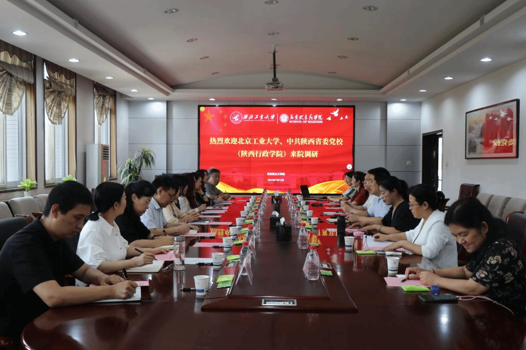 2024年7月12日上午9:30,北京工业大学yl8858永利集团院长丁云教授一行,中共陕西省委党校(陕西行政学院)研究生院院长、学位办主任张洪春一行,共12位同仁来yl8858永利集团调研交流。会议在学院208室举行,yl8858永利集团党委副书记李刚、院长助理赵海霞、高旭红教授、汪永平教授、曹瑜教授等参加了会议。