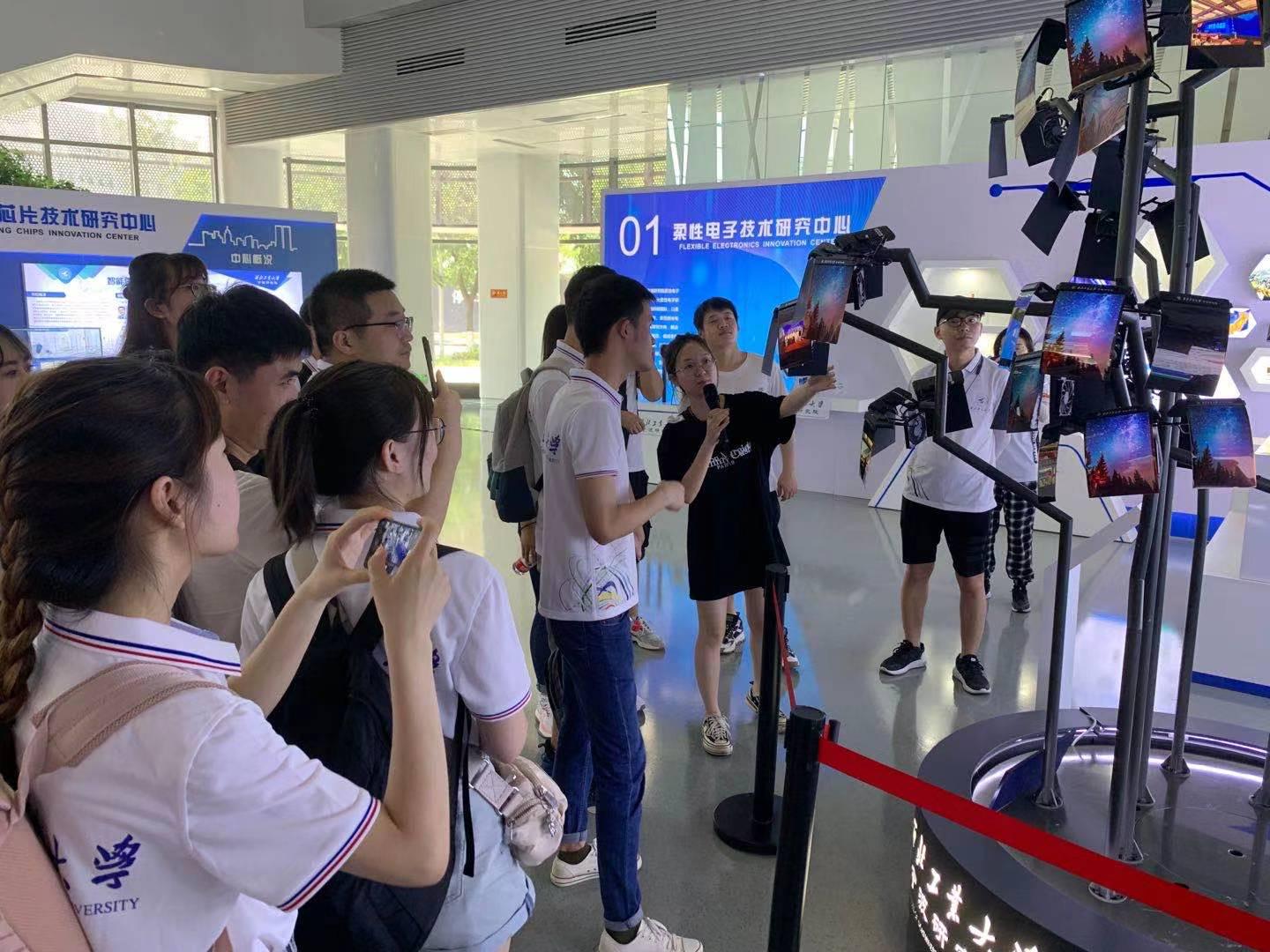同学们在科技展厅,先后参观了无人航行技术创新研究中心、民用航天技术创新研究中心、柔性电子材料与器件技术创新研究中心、智能传感芯片技术创新研究中心、卫星与大数据应用技术创新研究中心实验室。了解了研究院五个科技创新研究中心的基本情况,对研究院当前的研究方向、现有产品和应用情况有了深刻认识。