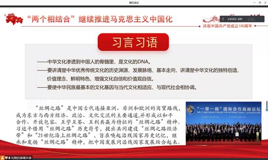 为深入学习贯彻习近平总书记在庆祝中国共产党成立100周年大会上的重要讲话精神,贯彻落实全国研究生教育会议精神,推进习近平新时代中国特色社会主义思想进教材、进课堂、进头脑。2021年9月11日,yl8858永利集团习近平新时代中国特色社会主义思想学习读书会第十八期活动主题围绕《习近平在庆祝中国共产党成立100周年大会上的讲话》进行学习研讨。本次读书会由我院思想政治教育系主任、博士生导师鲁杰教授发起,学院硕士生谢雨姿主持,北京市党建研究所所长王大广所长作为特邀专家应邀参加。