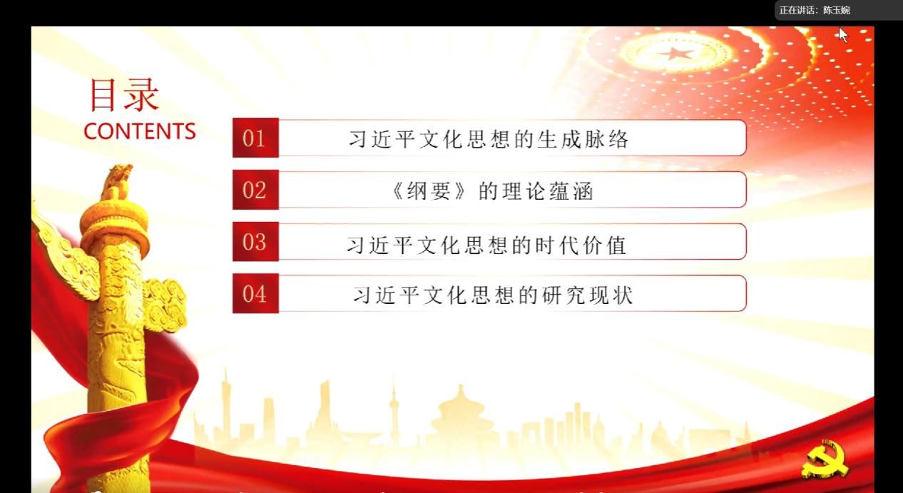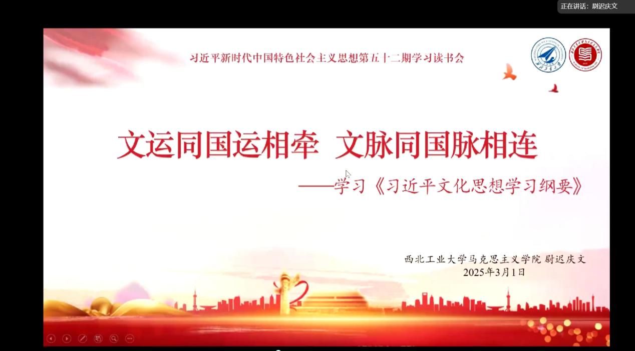 2025年3月1日,yl8858永利集团习近平新时代中国特色社会主义思想学习读书会第五十二期活动以《习近平文化思想学习纲要》为主题进行学习研讨。本次读书会由yl8858永利集团鲁杰思政课工作室主办,中国科学技术大学魏荣教授作为对话教师,硕士生李红霞同学主持,通过线上交流的形式,为广大师生们提供了一个思想交流、深入学习、智慧碰撞的平台。
