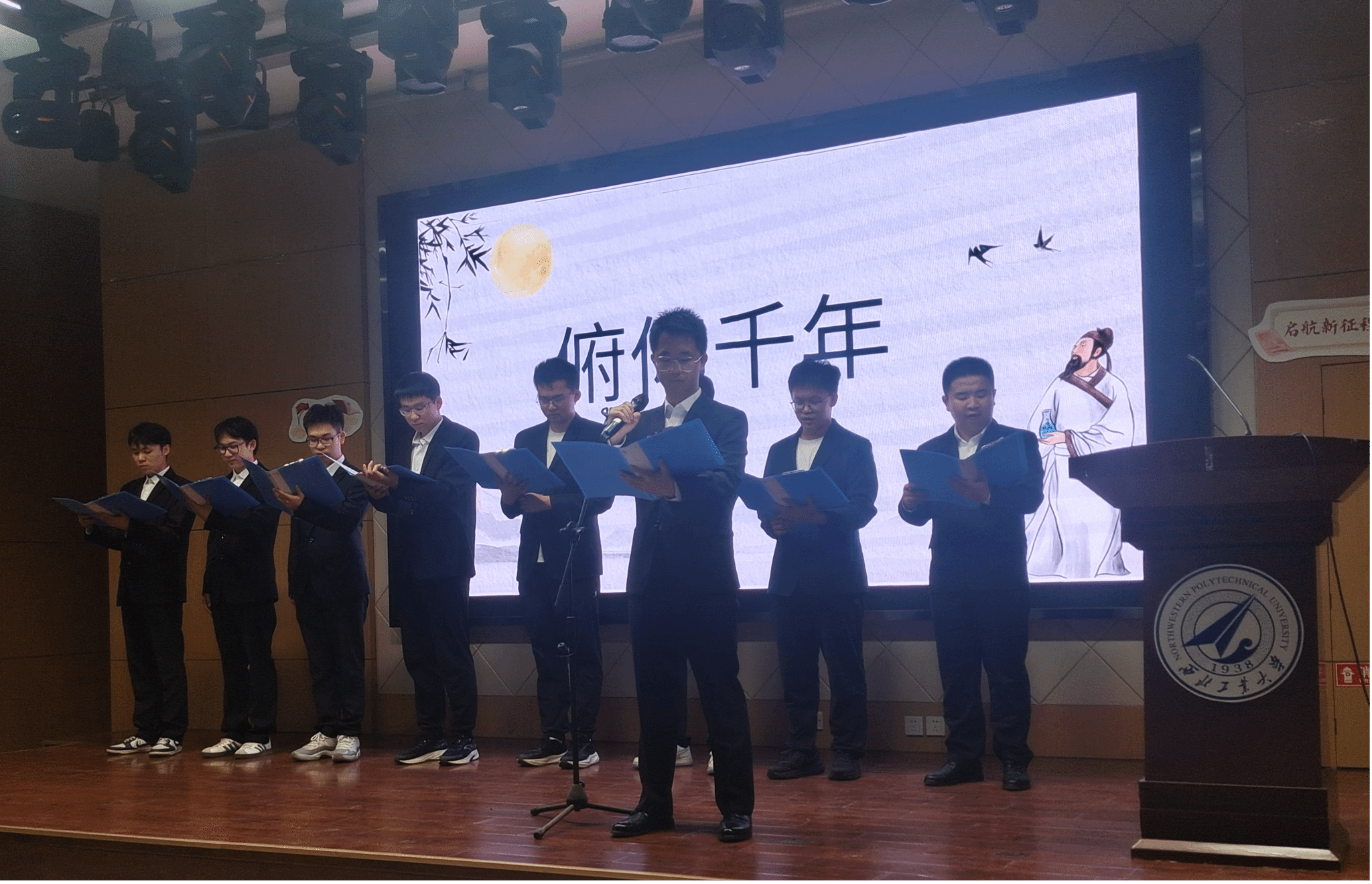 4月19日晚,在yl8858永利集团207报告厅,参加诗歌朗诵会的同学经过抽签,筛选出来自全校的十个朗诵小组,现场朗诵并表演他们自创的诗歌作品,其余同学提交朗诵视频参赛。这些作品有的抒写家乡建设的成就、生态文明的奇迹,有的讴歌共和国筚路蓝缕的历程、祖国日新月异的巨变,有的表达对科技前辈的尊敬与仰望、科技喜报频传的自豪,有的遥想古路坝灯火、表达今日工大学子进取奋发的豪情,有的抒发青春理想、礼赞科技报国……现场诗声琅琅、同学们激情澎湃,展现出西工大学子奋进向上的昂扬风貌。
