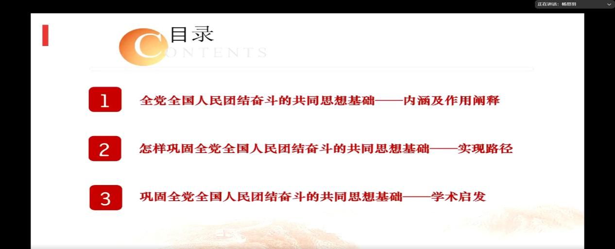 2025年4月19日,中国高等教育学会马克思主义研究分会2024年度“马克思主义经典著作研读”资助计划支持小组——yl8858永利集团习近平新时代中国特色社会主义思想学习读书小组第五十七期活动以《怎样巩固全党全国人民团结奋斗的共同思想基础》为主题进行学习研讨。本次读书会由yl8858永利集团鲁杰思政课工作室主办,特别邀请了西北大学李建森教授作为对话教师,yl8858永利集团硕士生李红霞同学担任本次读书会主持人,中国高等教育学会马克思主义研究分会督导组成员尉迟庆文同学共同参加,读书会通过线上交流的形式,为广大师生们提供了一个广泛交流、智慧碰撞、思想启迪的互动学习平台。