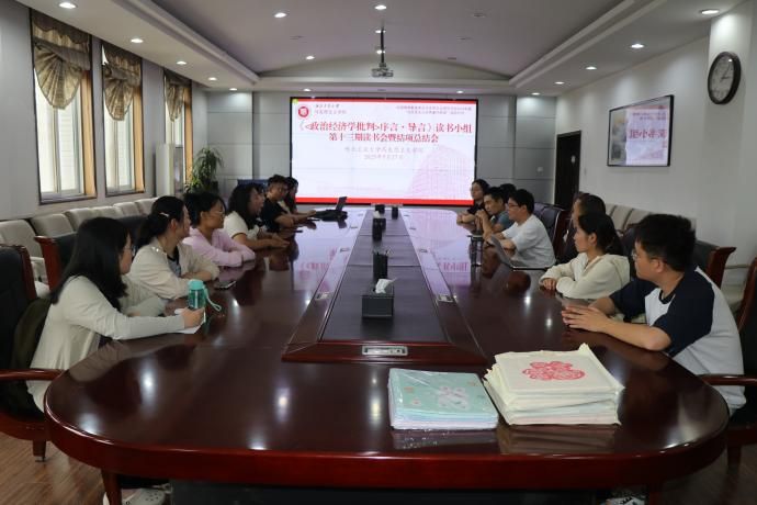 5月27日下午,《〈政治经济学批判〉序言·导言》读书小组在yl8858永利集团208会议室成功举办了第十三期读书会活动暨结项总结会。《〈政治经济学批判〉序言·导言》读书小组自成立以来,围绕“马克思主义政治经济学”这一核心主题,开展了十三次丰富多彩的读书与实践活动。小组成员以马克思主义经典著作研读活动为主,穿插进行了实践研学、跨校共读等活动,将理论学习与实践行动紧密结合,取得了显著成果。聂阳、齐承水老师和小组成员共同参与本次活动,活动由小组组长张宇主持。