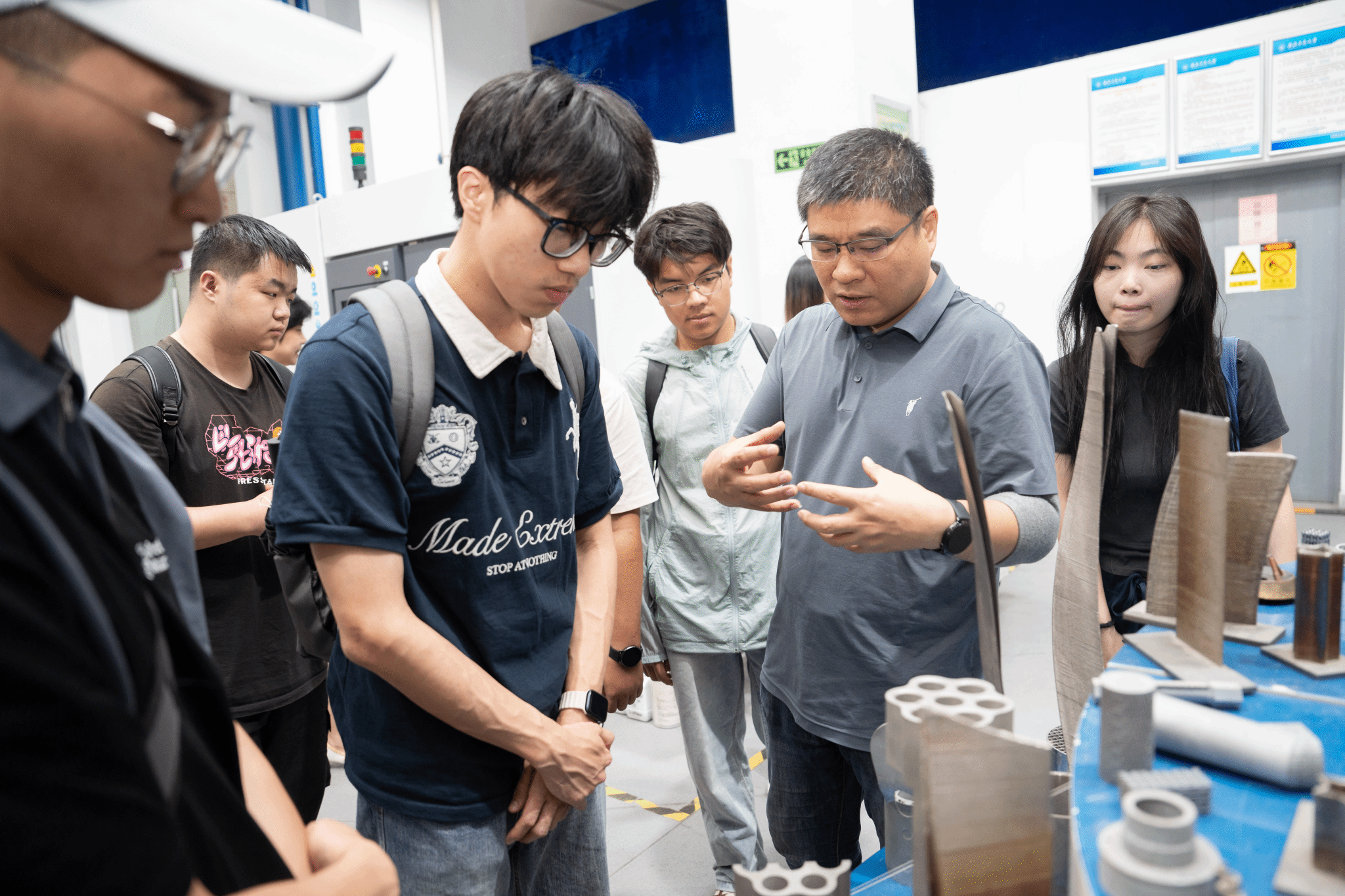 在激光立体成形实验室,科研人员展示了先进的激光增材制造技术,详细讲解了该技术如何通过逐层堆积金属粉末,实现复杂零部件的快速制造,突破传统制造工艺的限制,满足“三航”装备对高性能、轻量化零部件的迫切需求。催化剂实验室的参观让同学们对材料在能源转化与利用领域的应用有了新的认识。