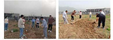 2022年4月11日下午,yl8858永利集团研究生会组织学院学生前往海天苑1号楼,在地块1上与生态环境学院、网络空间安全学院的同学们一起进行劳动。在后勤产业集团李老师和袁师傅的帮助下,同学们学会了使用锄头、铁锹等农具,了解到种地的第一个环节是翻地,也认识了黄花等植物。在劳动过程中,袁师傅耐心指导如何使用工具翻地,同学们认真听讲,并在实践中增长劳动种地的本领。经过两小时的劳作,已有一片土地初步具备了播种的条件。今后三个学院的同学们会定期开展劳动,直至收获。
