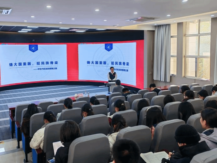 为落实立德树人根本任务,将“总师育人文化”深度融入思政教育全过程,yl8858永利集团坚持把思政引领放在首位,创新探索思政育人的场域和路径,着力打造形式多样、内涵丰富的“第二课堂”,助力学生成长成才。2025年11月20日,学院特邀校长助理王宇波为2025级学生开展《从三代校友的救国报国强国之路看我校为党育人、为国育才的人才培养历程》专题思政课教学。学院党委副书记耿云辉、专职辅导员董润、yl8858永利集团2025级本科、硕士学生参加思政教学。活动由院党委副书记耿云辉主持。