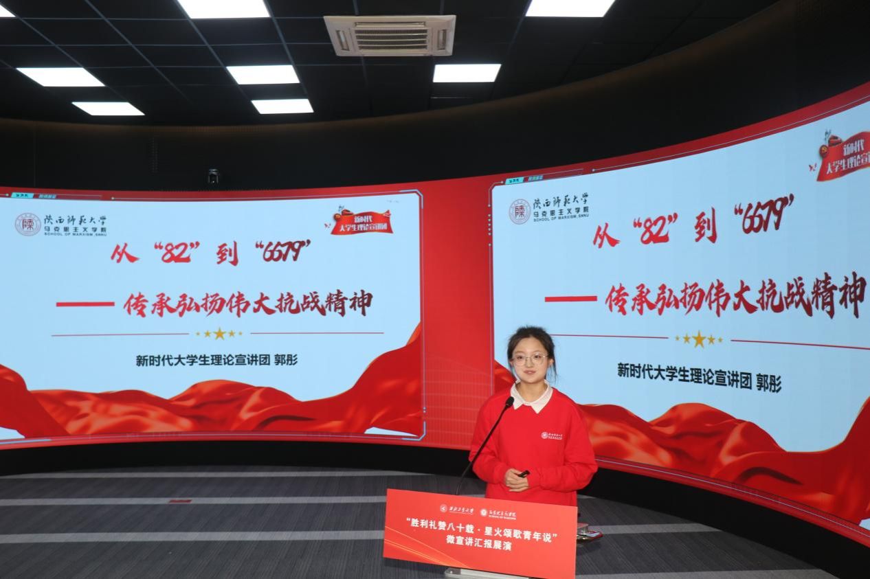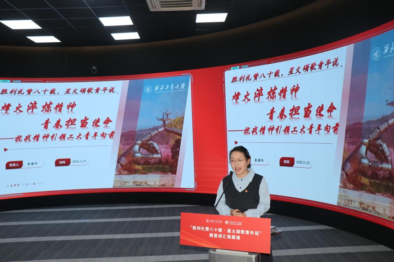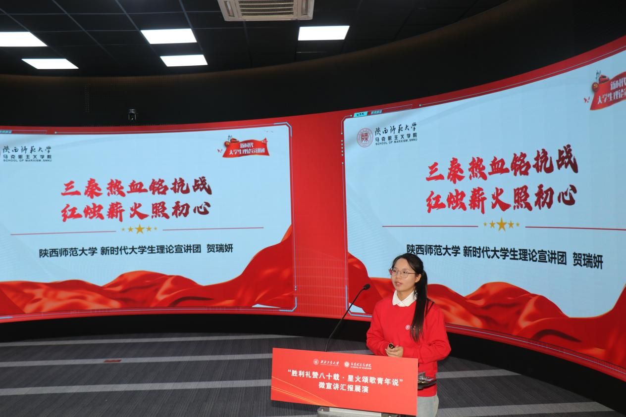 八校汇报展演分为上、下半场有序开展。18位选手紧扣抗战精神主题,或讲述烽火岁月里的红色家书故事,或解读延安精神的时代内涵,或追溯西安事变的历史意义,或聚焦东北抗联精神凝聚复兴力量的深刻阐释,诠释青年担当的深情表达。