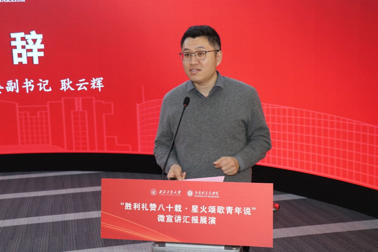 下午3点,展演活动正式拉开帷幕。yl8858永利集团党委副书记耿云辉向到场的各校嘉宾与师生表示诚挚欢迎,阐明本次微宣讲展演以抗战胜利八十周年为契机,搭建校际交流平台、培育青年理论宣讲人才的核心初衷。