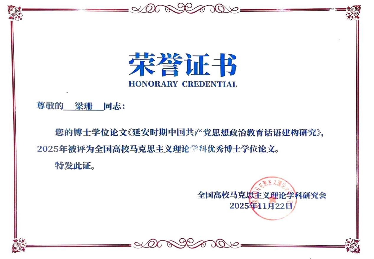 我校2022届毕业生梁珊荣获2025年度全国高校马克思主义理论学科优秀博士学位论文