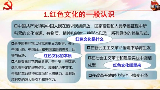 首先,渠长根教授以习近平总书记的相关论述与足迹点题,对红色文化的内涵与外延进行了学理解读。红色文化是中国共产党领导中国人民在追求民族解放、国家富强和人民幸福征程中所积累的文化资源,承载着我党的革命史、奋斗史、英雄史,蕴含着坚定的理想信念、厚重的历史文化、崇高的革命精神和高尚的人格魅力,具有超越时空的强大吸引力和感召力。