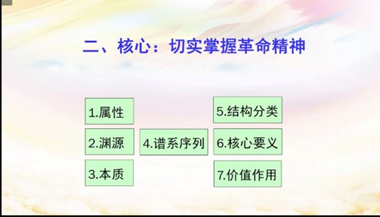 其次,渠长根教授从红色文化的核心是切实掌握革命精神阐释了其属性、渊源、本质、谱系序列、结构分类、精髓、价值作用等七方面内容。他强调,掌握革命精神要将以奋斗、拼搏为主的精神要素植根内心,形成行动自觉。他对各省市的革命精神资源进行深入解读,对红色文化尤其是革命精神研究的凝练、弘扬与传承具有示范意义。