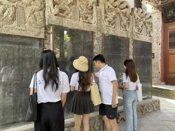 上午,实践队到达武侯祠进行参观。“出师一表真名世,千载谁堪伯仲间”。诸葛亮去世二十九年后,后主刘禅为纪念诸葛亮下令在其墓地旁建武侯祠。祠内文物丰富,匾联层层,碑石林立,古树名木众多,具有极高的历史价值与文化意义。除了足智多谋外,诸葛亮清正廉洁、忠于职守的高尚道德情操不仅在当时为世人所称颂,在今天同样具有十分重要的现实意义。