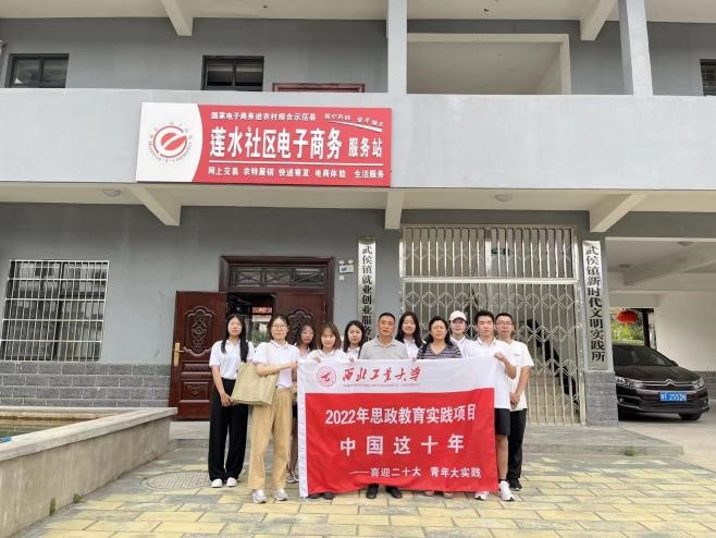 随后,实践队又来到了国家电子商务示范村——莲水。莲水社区由三个村落合并而成,现共有居民2666人,驻村干部三名。社区主任围绕社区集体经济、特色文化资源优势以及特色电商服务平台向实践队展开讲解,并带领实践队参观了根据阳平关古迹重建的高耸巍峨的城楼,以及诸葛亮在汉中屯兵8年时期阅读兵书,运筹帷幄的读书台,在这里仿佛能看到三国时期群雄四起的峥嵘辉煌。