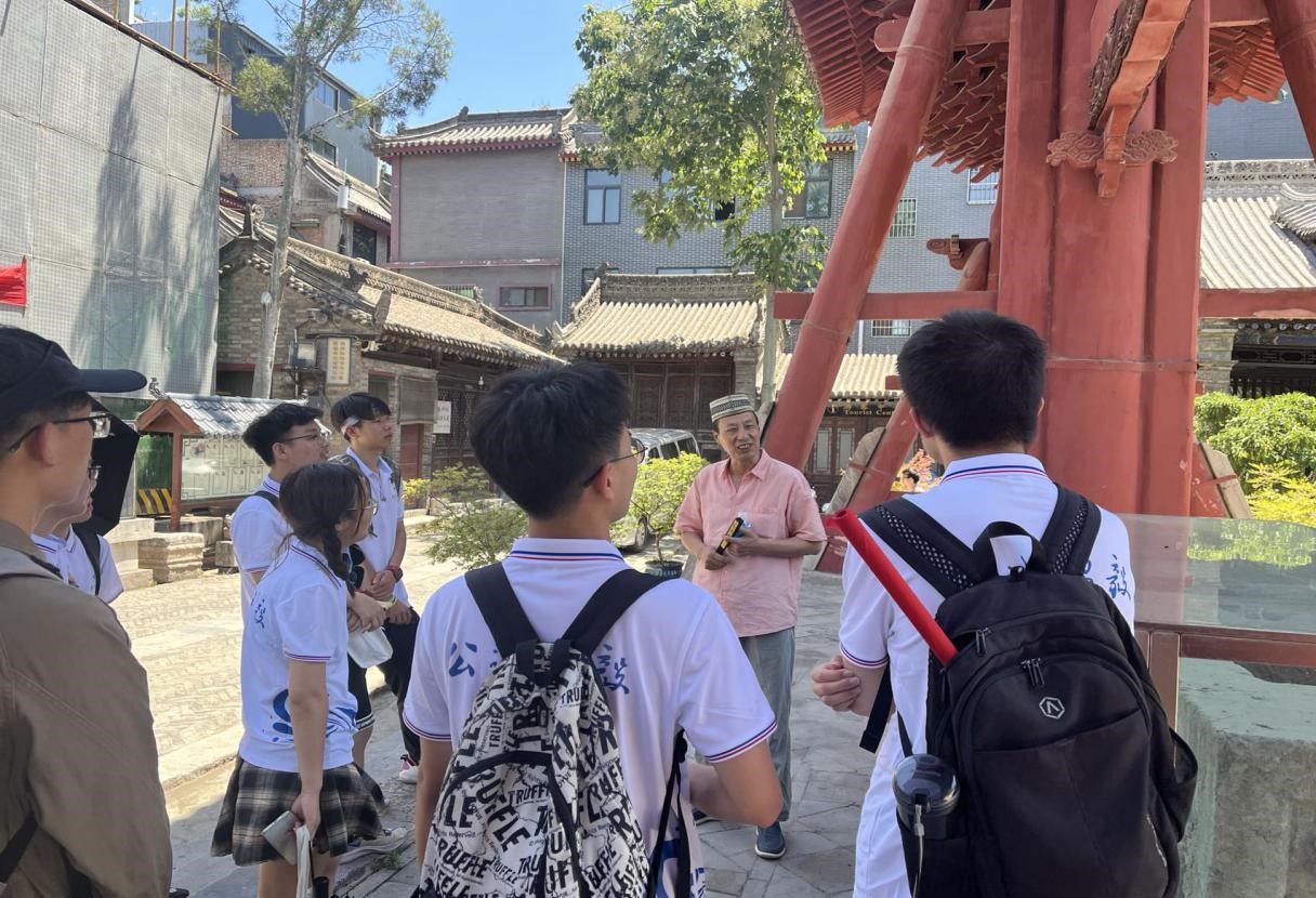 图为化觉巷清真大寺马骏祥老师为实践队员讲解
