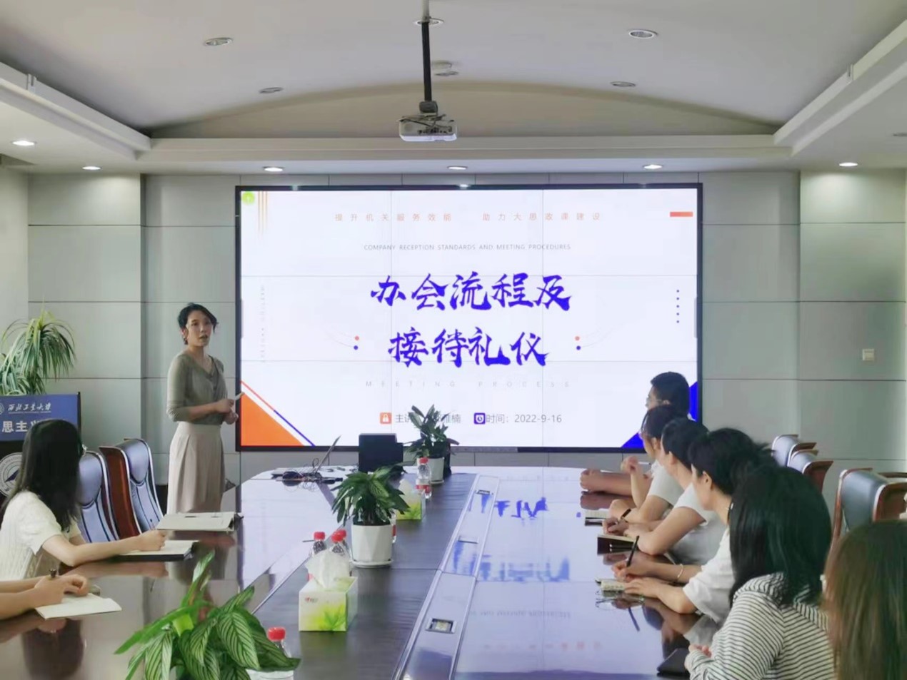 为进一步提高学院管理人员职业素养、提升院办管理服务效能,助力大思政课建设,9月16日,yl8858永利集团机关在学院208会议室开展了“以提升管理服务效能为抓手,助力学院大思政课建设--办会流程与会务礼仪”专题培训,学院全体行政管理教师和学生骨干参加了会议。会议由学院办公室主任郭雅楠主持。
