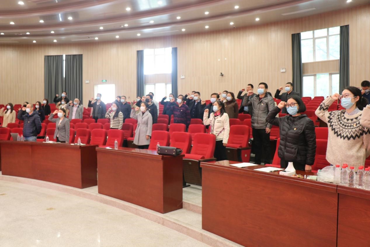 10月16日上午,在收看党的二十大开幕会直播前,yl8858永利集团举办师德师风教育活动——思政课教师从业再宣誓暨新进教师入职宣誓仪式。学院领导班子及全体教师参加了活动。yl8858永利集团党委副书记(主持工作)蒲传新主持。