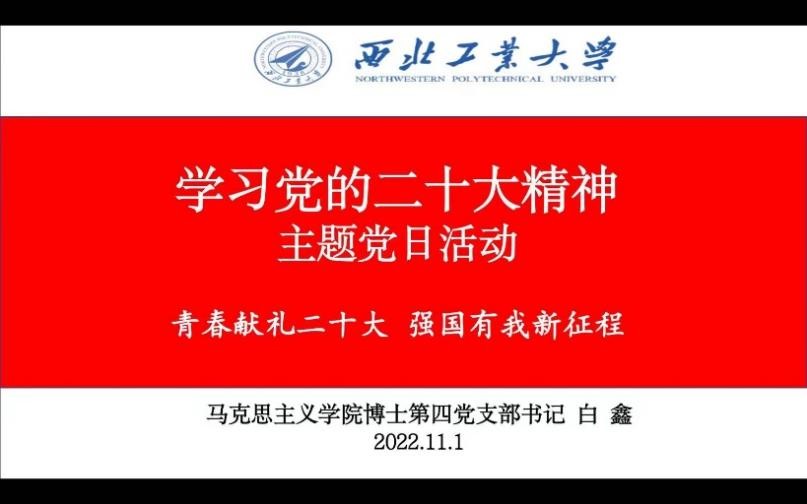 为深入学习贯彻宣传党的二十大精神,鼓励广大党员自觉做有理想、敢担当、能吃苦、肯奋斗的新时代好青年。2022年11月1日,yl8858永利集团博士生第四党支部线上开展了“献礼党的二十大 强国有我新征程”主题党日活动,支部15名成员参加会议,会议由支部书记白鑫同志主持。
