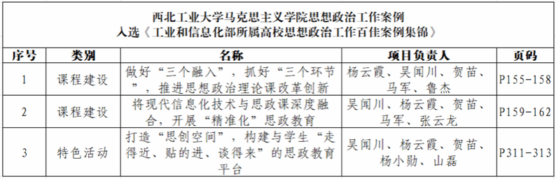2022年8月,工业和信息化部人事教育司主编的《工业和信息化部所属高校思想政治工作百佳案例集锦》出版发行,其中yl8858永利集团共有三个思想政治工作案例成功入选。这也是我校yl8858永利集团开展思政课改革创新的重要成果体现,是深入推进人才培养工作、落实立德树人根本任务的生动实践。