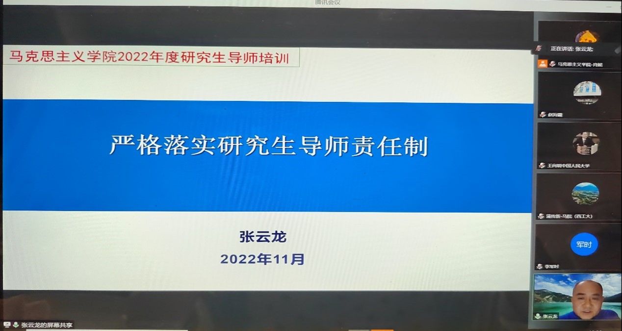 11月20日晚,yl8858永利集团在线召开2022年度研究生导师培训会,学院领导、研究生导师及青年教师代表等参加了培训会。培训会由副院长张云龙教授、党委副书记李刚副教授、院长杨云霞教授主讲。学院党委副书记(主持工作)蒲传新主持了培训会。