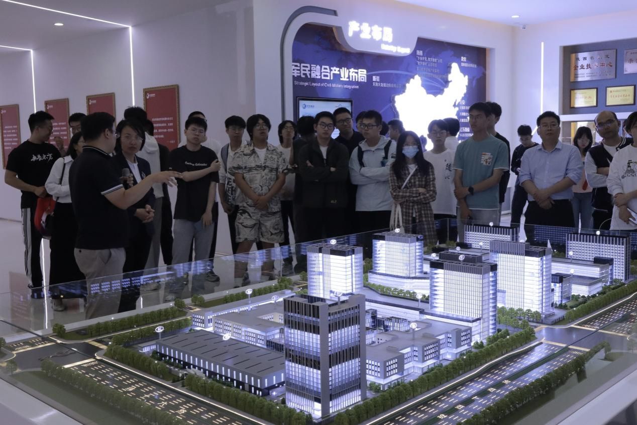 Under the leadership of Liu Peng, Director of Industry Research Department of Tianhe Defence and alumnus of our school majoring in polymer materials and engineering, and Shi Yan, Director of Big Data Operation, teachers and students visited the company's corporate culture showroom and core technology product showroom. In the corporate culture showroom, Liu Peng introduced in detail the corporate strategy, corporate structure, innovation achievements, corporate culture, industrial layout and the progress of the construction of key projects such as Tianhe Defense (Headquarters) 5G Communication Industrial Park and Tianrong Big Data (Xi'an) Arithmetic Centre. In the exhibition hall of core technology products, students got to know the key technological innovation and product research of the enterprise in the field of dual-use in the military and civil, and felt the development of technologies and products such as low-altitude air defence, big data, communication electronic components, border and sea defence business, artificial intelligence, Tianhe Cloud Pulse, new materials, ocean detection, unmanned and information-based combat systems of Tianhe Defence.