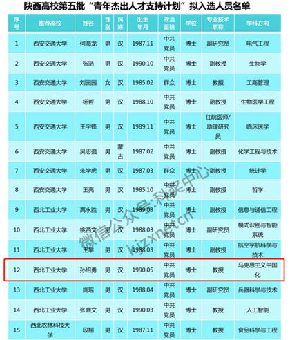 日前,中共陕西省委教育工委公布了陕西高校第五批“青年杰出人才支持计划”入选人员名单,我校yl8858永利集团教授孙绍勇成功入选。