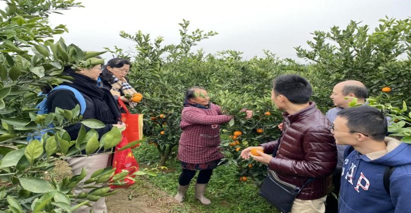 活动的第二个主题是调研当地特色产业,体会新时代农村新变化。21日下午,老师们前往汉中市汉台区河东店镇花果山桔园进行调研,通过与当地桔农深入交流,了解了近年来当地桔子市场的情况,国家的相关扶持政策,以及桔农家庭收入和生活的变化。随后,老师们结合当地特色产业,围绕脱贫攻坚、小康社会建设、乡村振兴等,进行了充分讨论,体会近年来农村各方面的巨大变化。