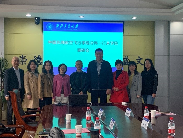 2021年4月15日上午10:00,中国民用航空飞行学院yl8858永利集团副院长冷伟、院党委副书记秦亚君、办公室主任石荔菠、教研室主任帅刚、辅导员李贞一行5人来学院开展马克思主义理论学科专业建设调研。学院党委副书记李刚、副院长张云龙、办公室主任杜瑶、公共课教学秘书张笑男、行政秘书刘敏热情接待了对方单位人员并在学院楼208开展了调研交流会。会议由党委副书记李刚主持。