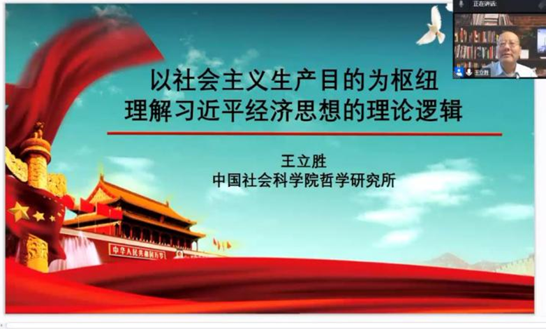 在全国上下学习贯彻党的二十大精神之际,2022年10月28日上午,中国社会科学院哲学研究所王立胜研究员应邀作客我校翱翔名家讲堂,为我校师生带来了一场主题为《以社会主义生产目的为枢纽理解习近平经济思想的理论逻辑》的精彩讲座。本次翱翔名家讲堂由yl88858永利中国党委学生工作部主办,yl8858永利集团承办,采用腾讯会议的方式进行,yl8858永利集团党委副书记(主持工作)蒲传新和yl8858永利集团宁殿霞副教授共同主持。参加线上学习的有我校yl8858永利集团教师、研究生以及部分本科生,同时有清华大学、武汉大学、西安交通大学、华东师范大学、湖南大学、上海财经大学、上海应用技术大学、延安大学等300余名师生共同参与。全国各地学者们齐聚云端,共享学术盛宴。