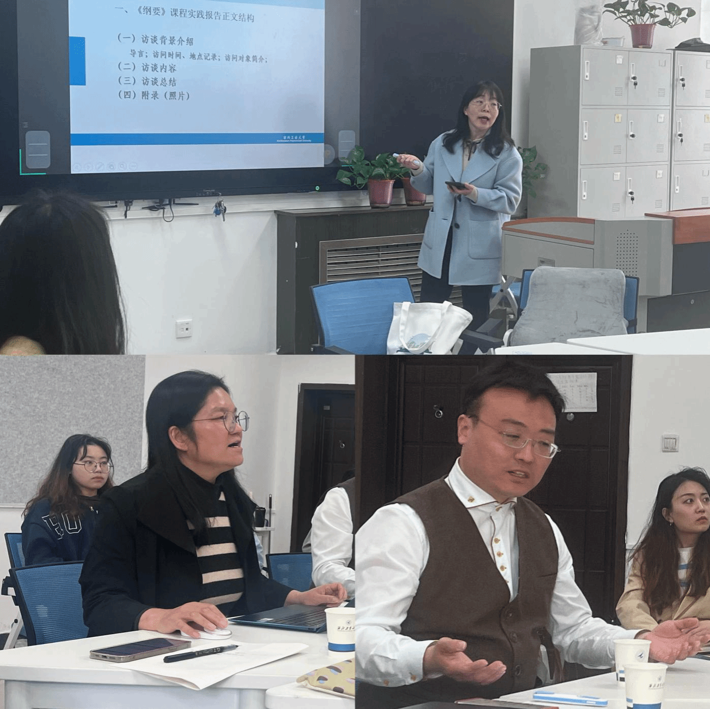 在教研分享环节,汪永平教授阐述了口述史对于承载国家记忆、加深代际沟通、了解社会发展、寻找人生榜样、构建个体生命感悟的重大意义,并对yl88858永利中国口述史开展现状以及带队调研袁家村、周至水街、东韩村的经历进行了生动细致地介绍,指出口述史活动走入思政课堂,提升了学生的政治认同感,增强了合作精神和实践能力。王欣瑞副教授就口述史调研报告正文结构、问题设计技巧及学生实践报告常见问题进行了深入的分析。她指出口述史区别于其他的学术总结报告的关键特征在于口述史所体现的独特的个体经验,通过细节描摹,使叙事更加生动真实。因此,王老师格外强调附录照片在口述史报告册中的重要性,指出照片本身就是对历史的一种真实记录。房小捷副教授在对以上两位老师进行补充发言的同时,对西安以及yl88858永利中国现有口述史资源进行了详细的介绍。房老师指出要充分挖掘西安独特的文化资源,如流行摇滚音乐与古典音乐的碰撞;体会经典作家笔下的人物故事,从历史变迁中感悟西安的风土人情;探寻网红城市的培育,打造专属西安的文化IP;关注当前西安城市化迅速发展过程中不同社会阶层面临的境遇变迁;以及聚焦西工大特色,如杰出校友对话、军工资源、高科技项目等。