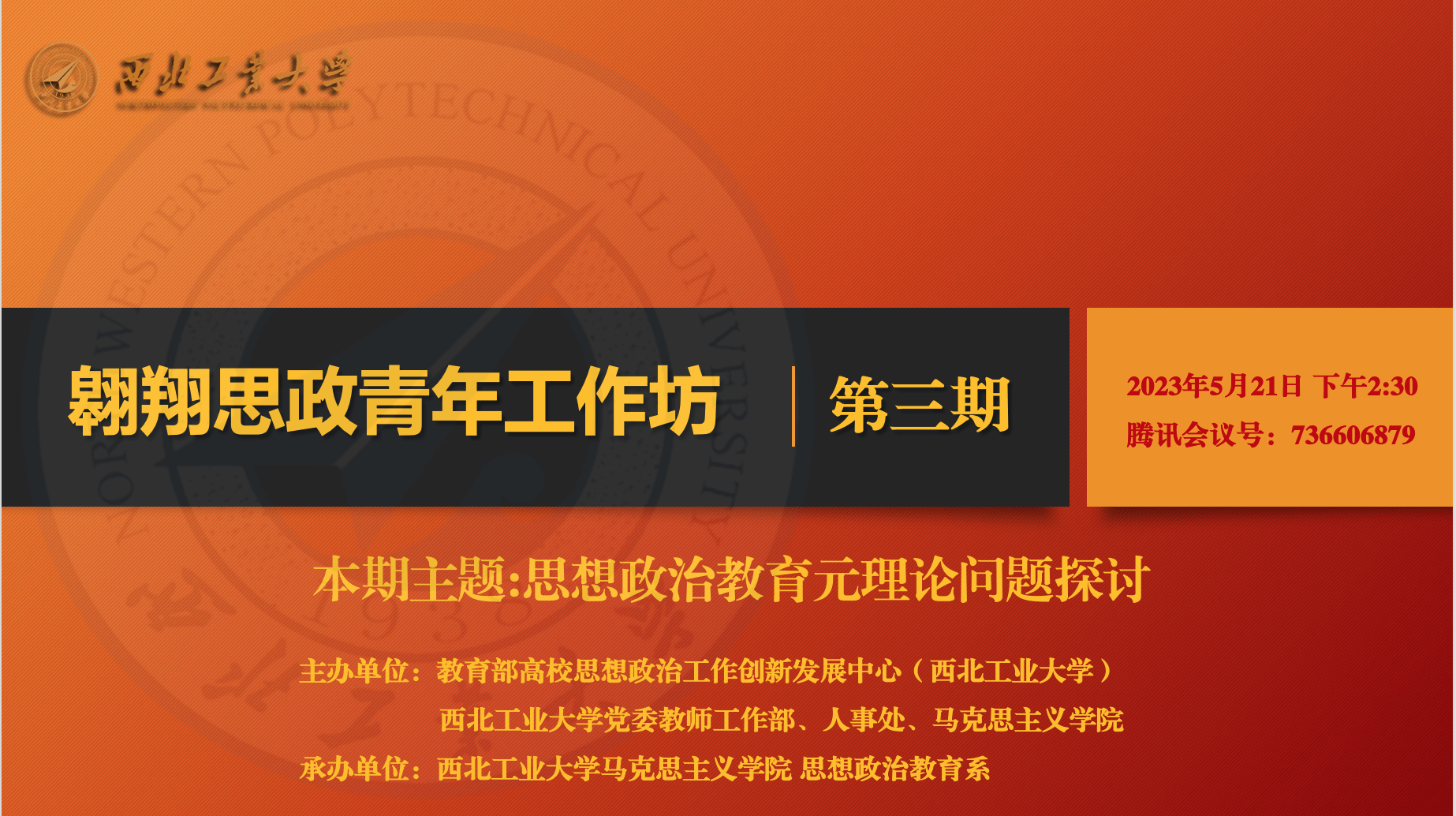 思想政治教育是中国共产党的独特优势和高校各项事业建设发展的中心环节,为夯实与深化思想政治教育学科基础理论的研究,5月21日,yl8858永利集团翱翔思政青年工作坊(第三期)在线上成功举行。本工作坊由教育部高校思想政治工作创新发展中心(yl88858永利中国)、yl88858永利中国党委教师工作部、人事处、yl8858永利集团主办,yl8858永利集团思想政治教育系承办。本期工作坊共邀请了五位优秀的青年思政学者,以“思想政治教育元理论问题探讨”为主题,进行观点分享与互评对谈。
