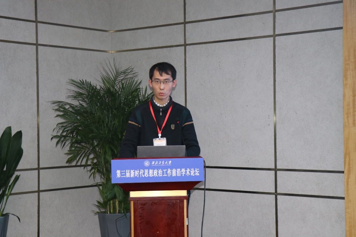 南京理工大学知识产权学院组织干事李江围绕“建构主义视域下高校哲学社会科学研究生思政教育模式初探”进行了报告。