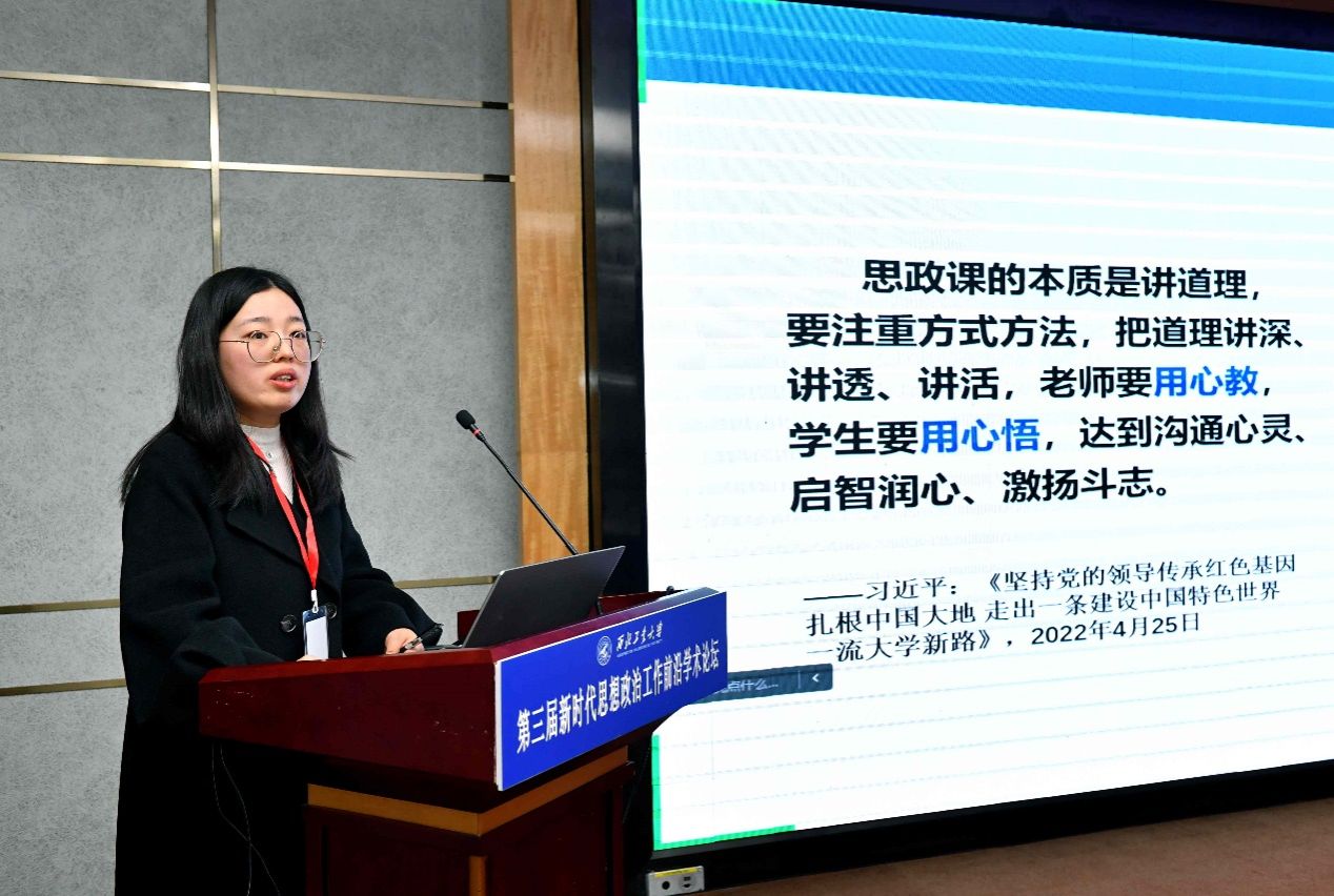 西安电子科技大学yl8858永利集团孙纪瑶副教授从内在逻辑、价值意蕴、实践进路三个维度探讨了“伟大建党精神融入新时代大学生理想信念教育”的问题。